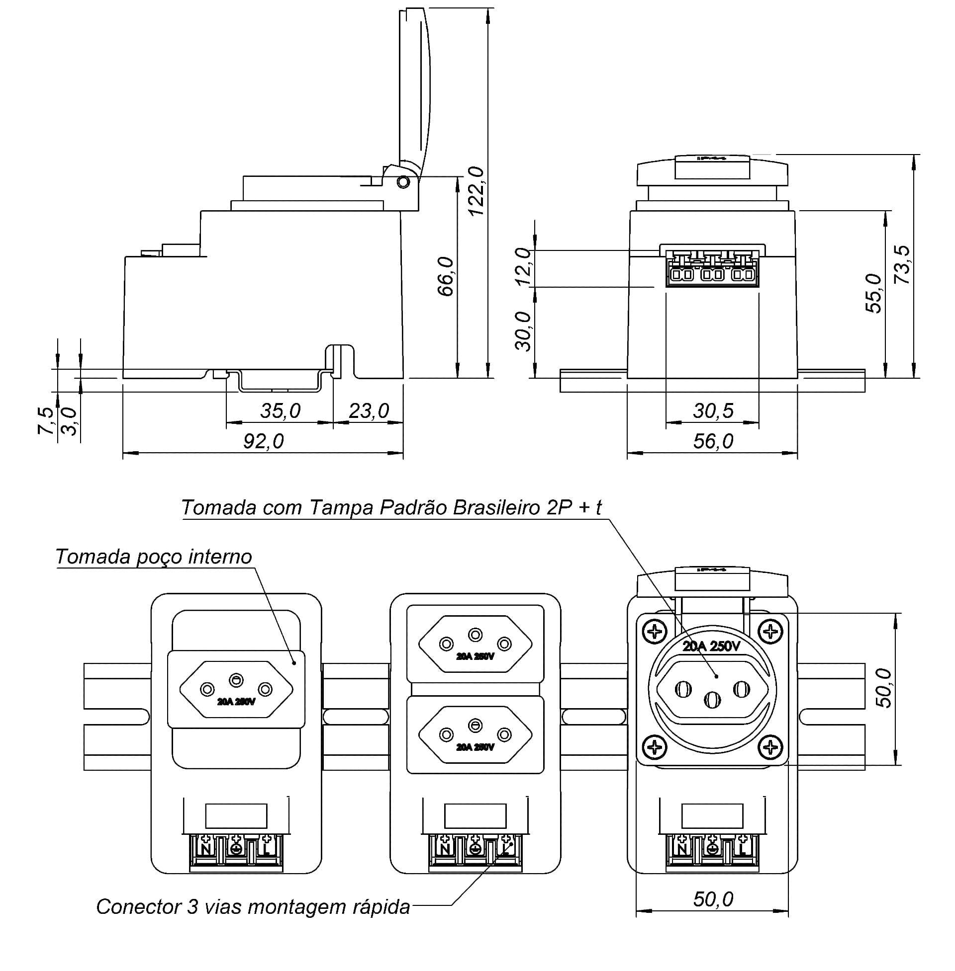 | 505.TTD.220 | Tomada trilho DIN 2P + T – 20A | TTD_01TP | ABS | RAL7032 | Encaixe rápido |